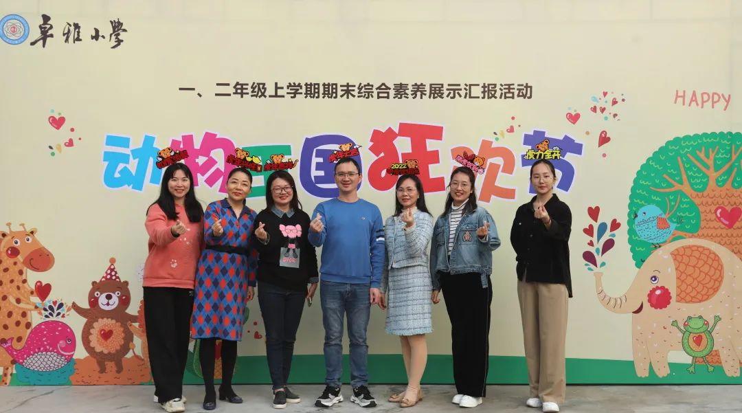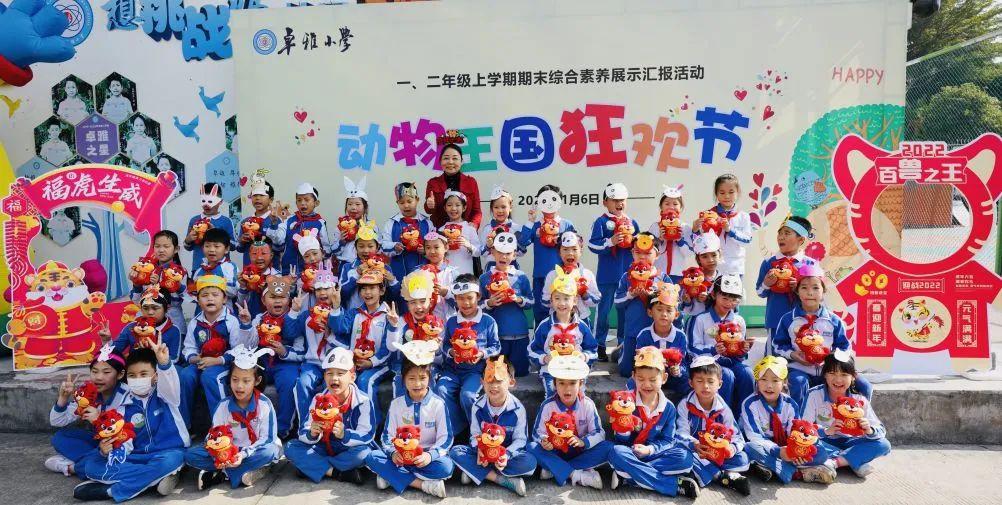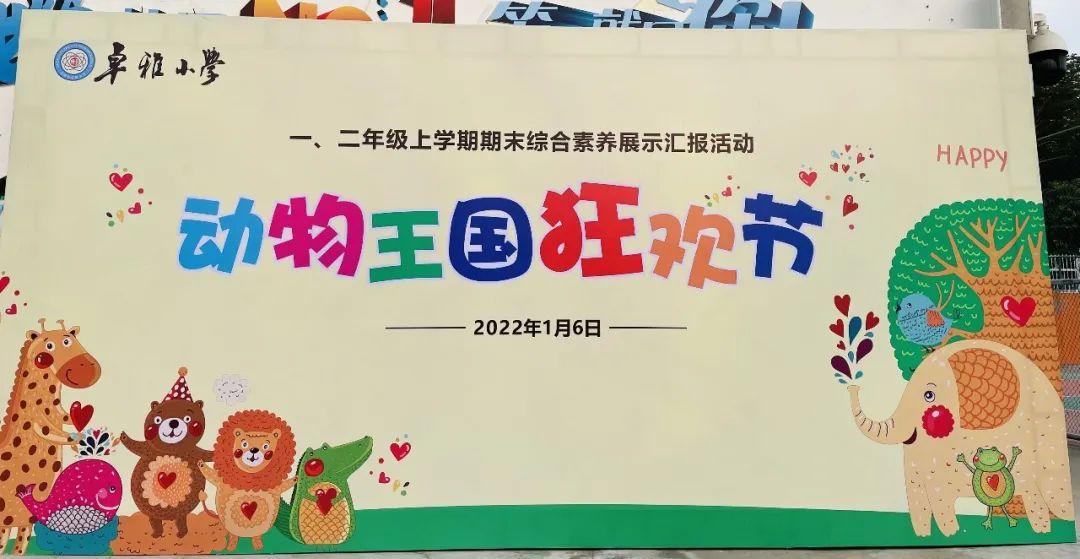 原来,为更好地执行国家“双减”政策,开展好低年级无纸化综合素质考核,促进学生全面健康成长,积极响应广东省深圳市义务教育学生综合测评、全方位培养人才的要求,卓雅小学于1月6日、7日,开展一二年级期末综合素养展示汇报的游园活动,名字叫“动物王国狂欢节”。