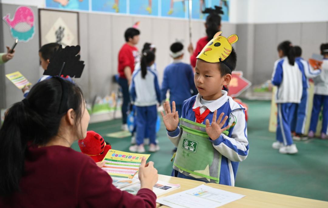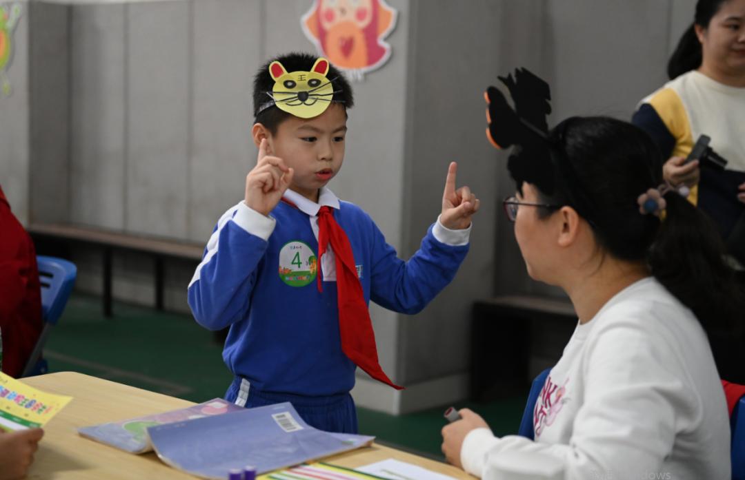 测评涉及语文、数学、英语、科学、美术、音乐、体育、劳动等科目,同学们亲手制作的创意动物头饰,就是其中美术学科的项目。