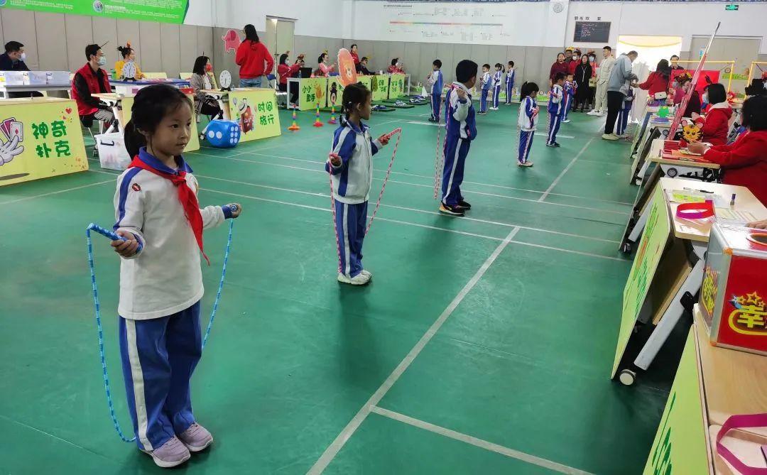 “‘绳’采飞扬”项目中大家一蹦一跳,起跳过绳,动作流畅,认真专注。