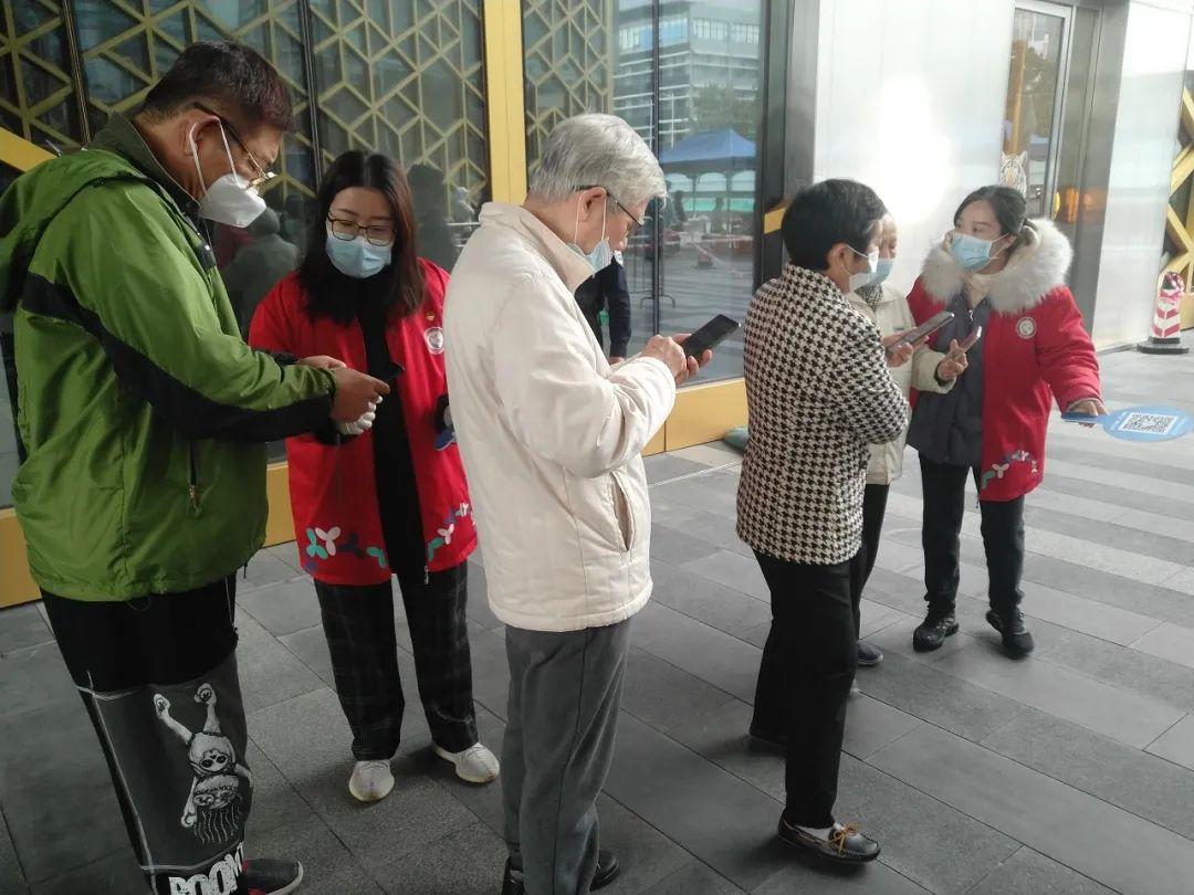 ▲社区党员为特殊群体开通绿色通道并指引信息登记