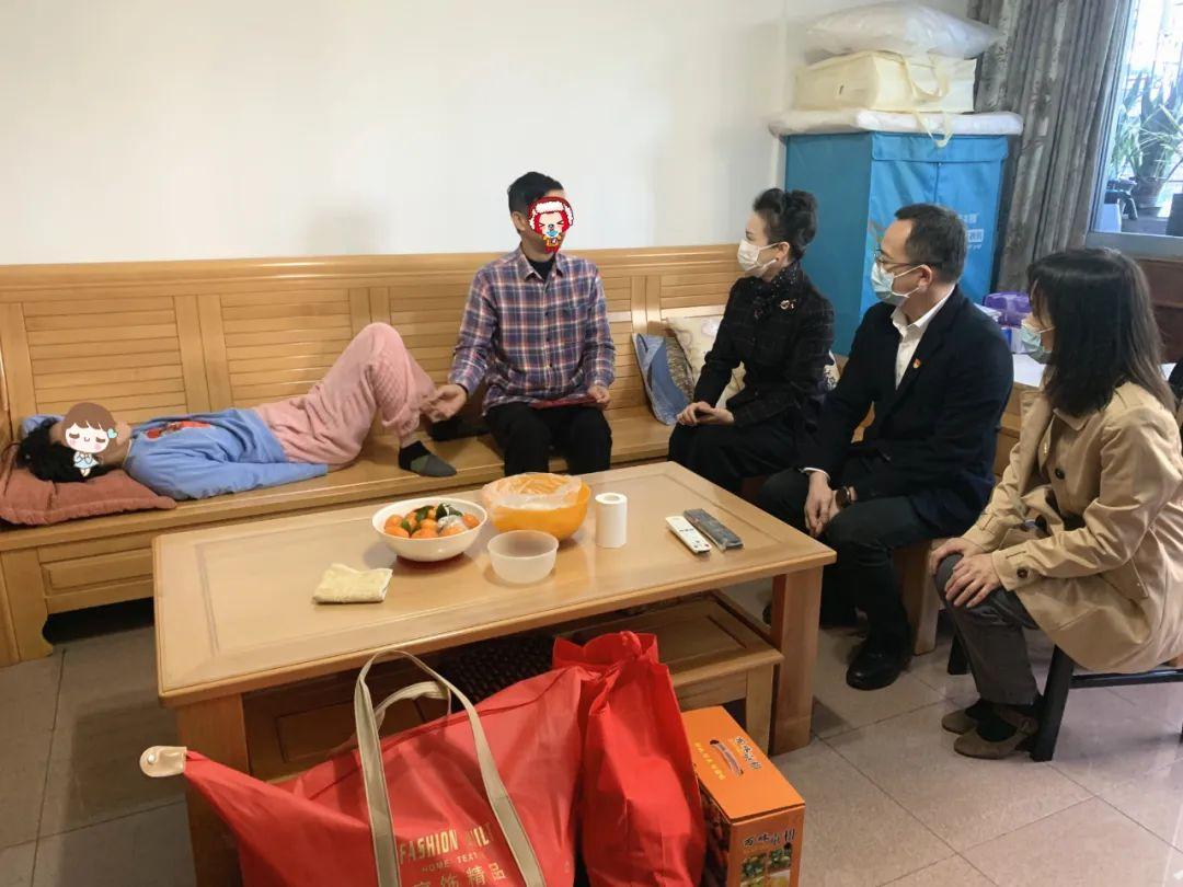 詹辉同志关切地询问小吴的康复治疗情况,鼓励他们树立生活信心,勇敢面对逆境,用自己勤劳的双手去创造美好生活,用乐观的心态战胜疾病和困难,并送上慰问金和慰问品。
