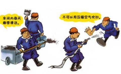 涉爆粉尘企业应先打开除尘系统的负压风机及洗涤循环水确定无异常后再进行生产作业,并严格按《粉尘防爆安全规定》落实粉尘清扫要求;