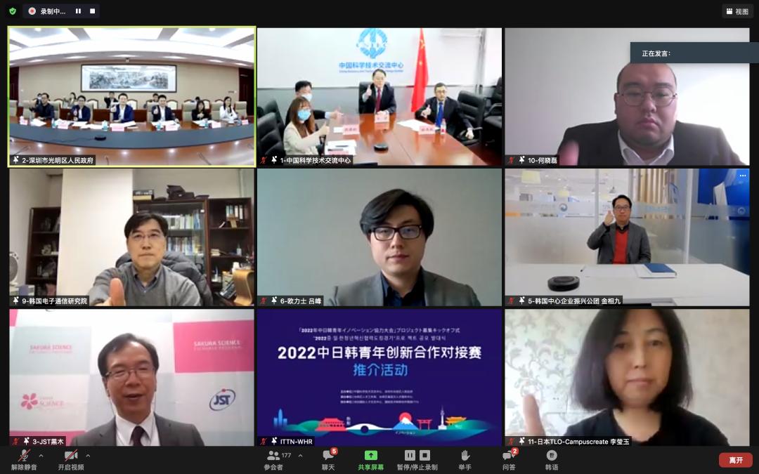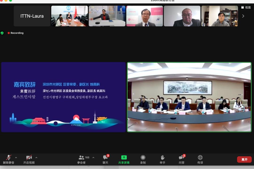 本次推介活动由中国科学技术交流中心、深圳市光明区人民政府主办,光明区人才工作局、光明区高层次人才服务中心承办,深圳国际人才交流中心、国际技术转移协作网络ITTN协办,来自中日韩三国的创新机构、合作单位以及本土科技企业代表以视频连线的方式参会。