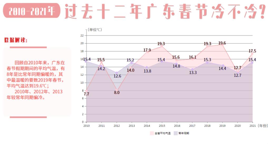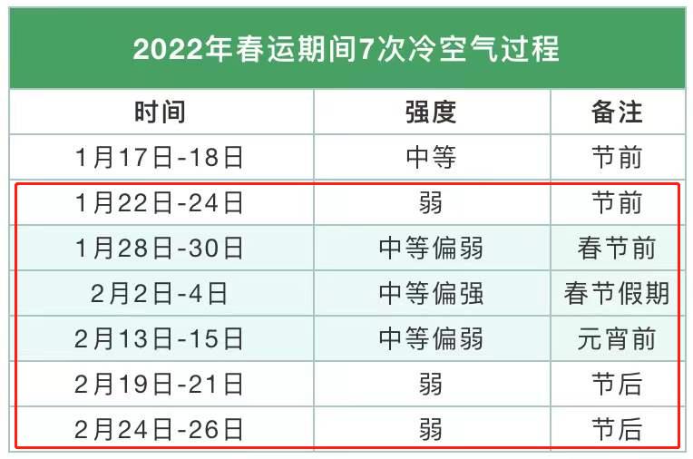 2022年春运期间,广东省出现类似2008年大范围持续性低温雨雪冰冻灾害和2016年冬季大范围暴雨的可能性较小,平均气温除粤东沿海接近常年,其余大部地区较历史同期偏低0℃~1℃。不过,春运期间气温起伏明显,有可能发生阶段性强降温事件。
