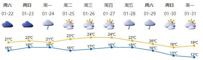 23-24日,阴天间多云,偶有零星小雨,早晚有轻雾。