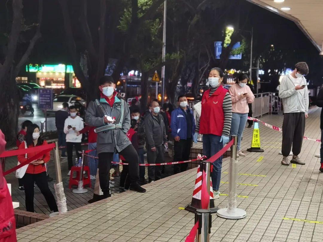 “队伍一定要点清人数,逐个检查‘粤核酸’二维码,两名工作人员轮流扫码,扫不出来时,要手动录入信息,不卡住后面的队伍。排好队的居民也要时刻盯住,不能乱跑。”作为临时义工小队长的张玉洪,不厌其烦地给没有经验的志愿者们强调检测注意事项,确保核酸检测工作顺利进行。