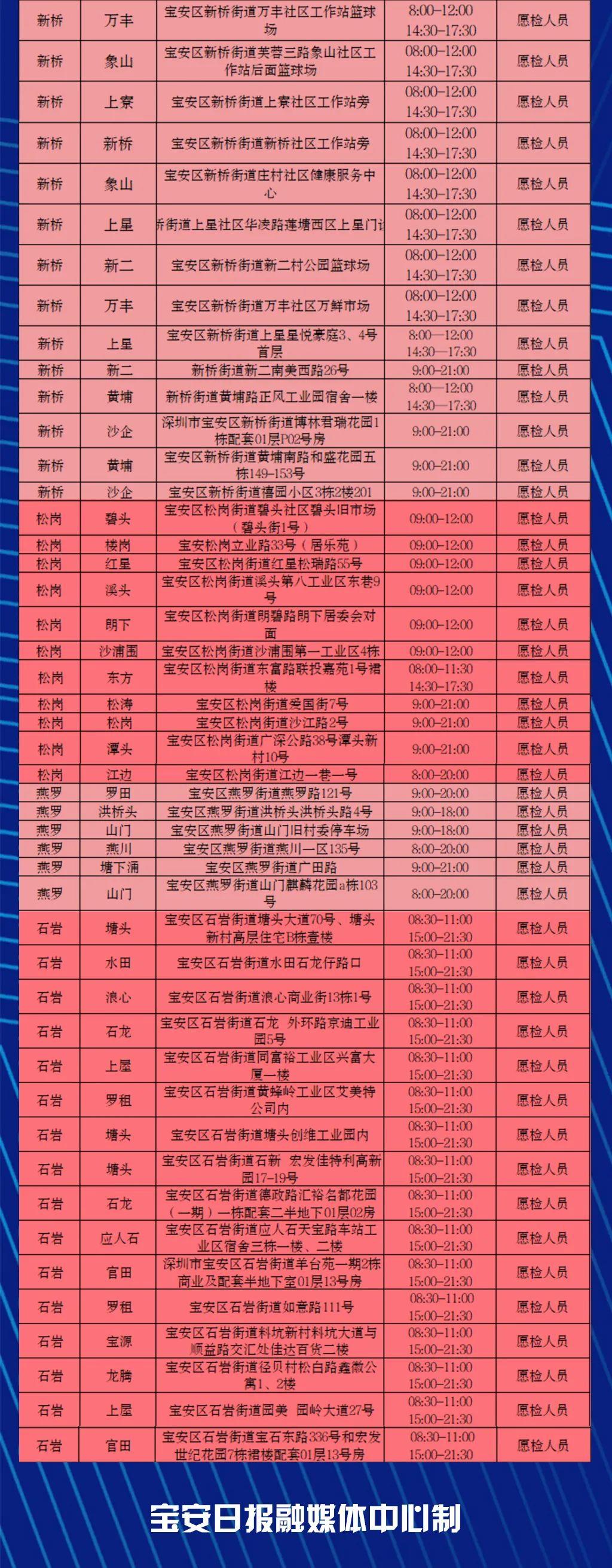 宝安区内共有以下四类核酸采样点