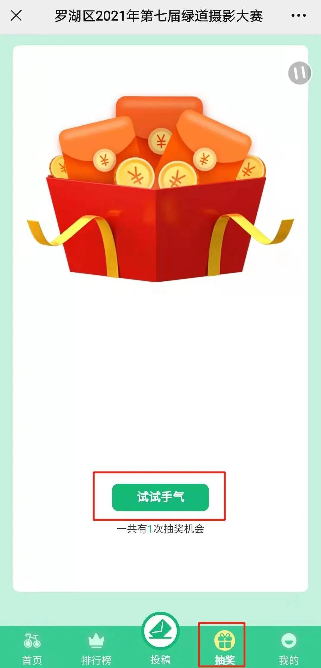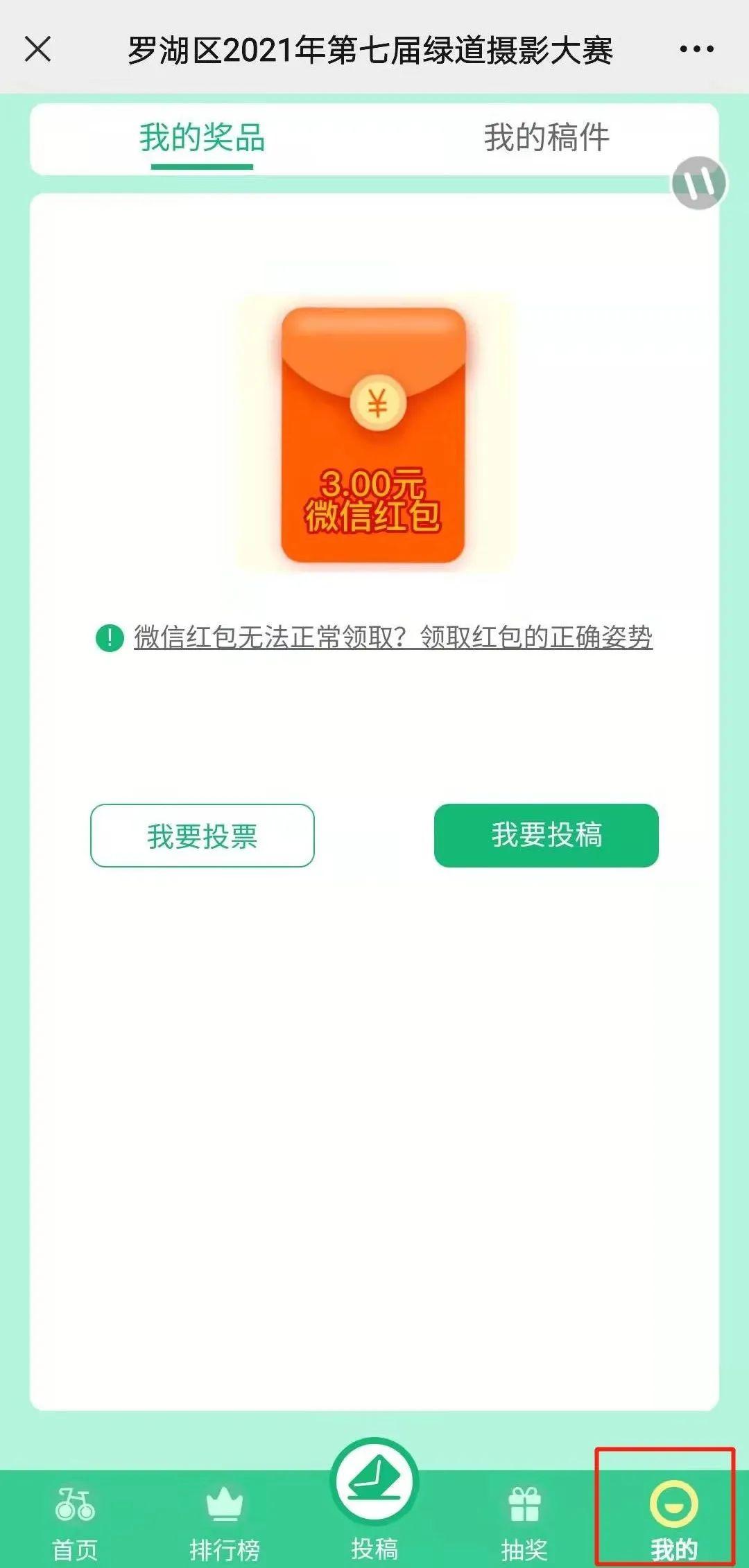 完成投票后将获得一次抽奖机会,点击下方引导栏“抽奖”即可前往抽取现金红包。点击“我的”,可以查看已获得的奖品。