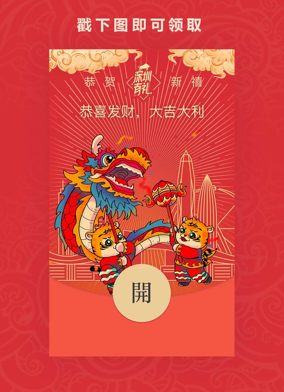 活动将在虎年春节前夕,为深圳人送出100000份虎年限定微信红包封面、5500份虎年限量新春礼盒以及虎年专属表情包。
