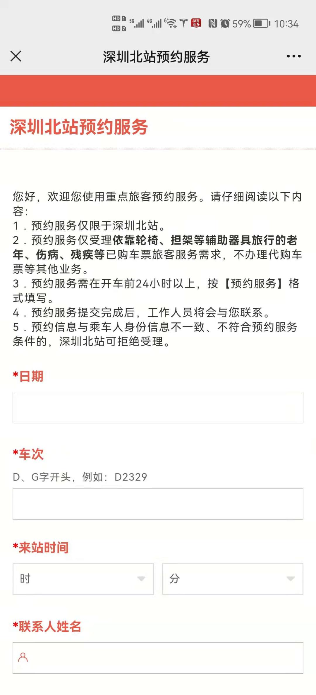 这是深圳北站今年春运上新的一项人性化服务。“为了更好满足特殊重点旅客的出行需求,我们推出线上重点旅客预约服务,线上对接,线下安排专人负责接送,及时解决他们出行过程中遇到的困难。”值班站长蒋婉妮介绍。据了解,旅客只需关注“深圳北站迎春花爱心服务队”公众号,填写信息,就能在乘车当天申请一对一出行帮扶服务。“我们将为需要依靠轮椅、担架等辅助器具旅行的老年、伤病、残疾等已购车票的旅客提供预约服务,预约时间为开车前24小时以上。”