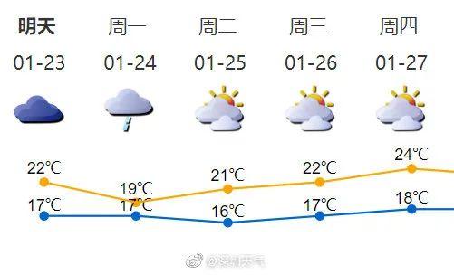 深圳1月26-29日多云间晴天;30日起有明显冷空气影响,转阴雨天气,气温下降。