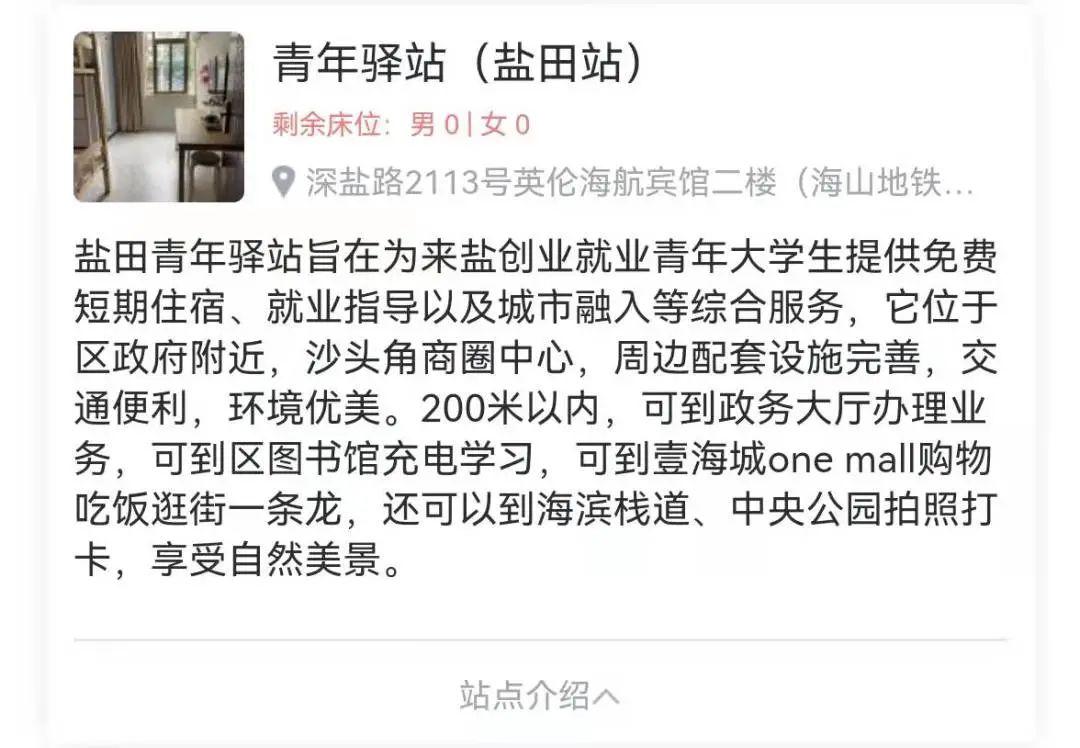 就可以申请青年驿站(盐田站)