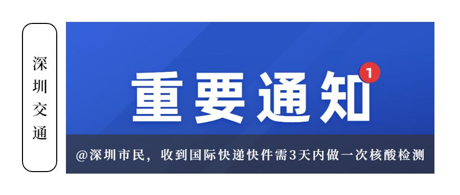 此外,温馨提示,近期收到国际快递快件的深圳市民,请在3天内完成一次核酸检测。