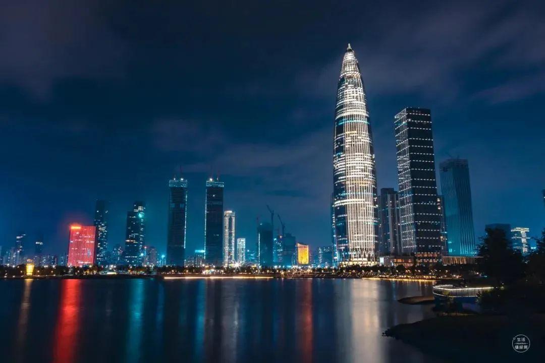 远处高楼大厦里是无数尚未下班的奋斗者,他们没有熄灭的灯光也为深圳的夜色贡献了一份美好。