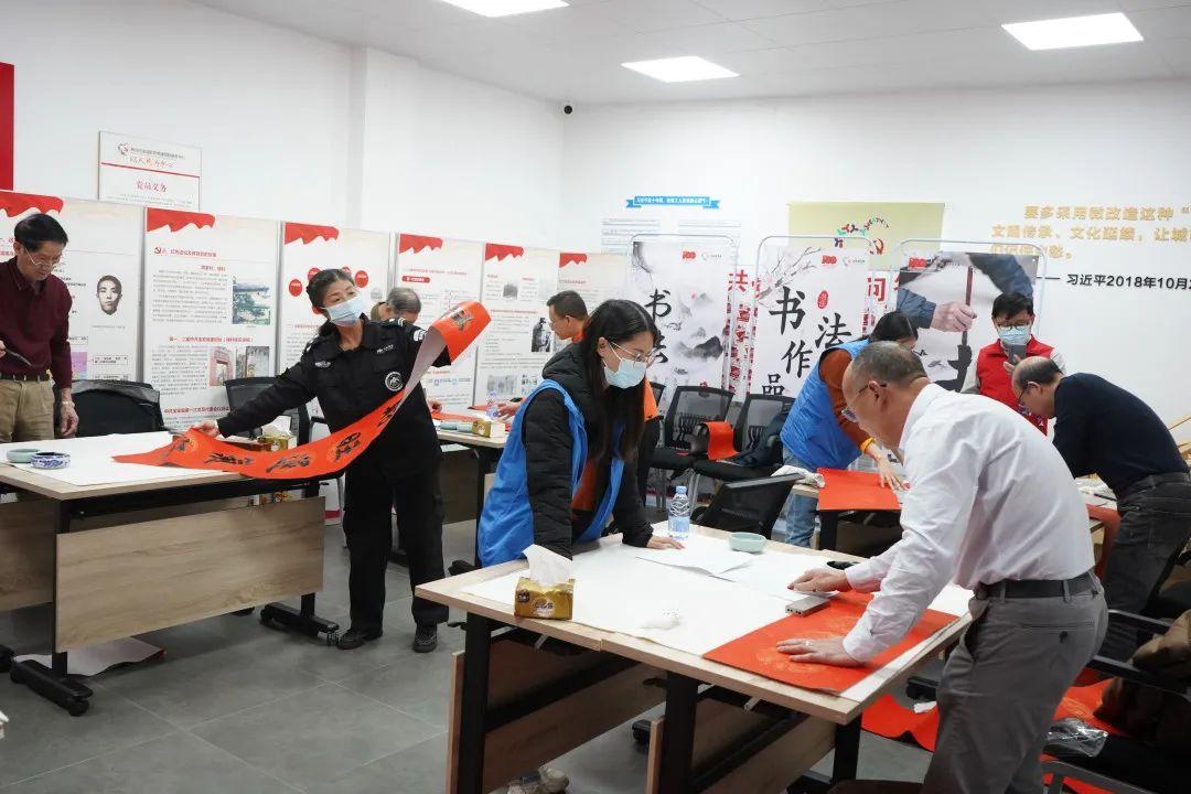 在做好疫情防控工作的前提下,1月12日下午,由松岗街道碧头社区工联会、松岗街道书法协会联合举办的“翰墨飘香、携手防疫、新春送福”活动在松岗街道碧头社区职工之家进行,活动共赠送春联、福字300余套,在为社区居民和企业留深过年职工增添年味的同时,进一步加强对疫情防控的宣传。