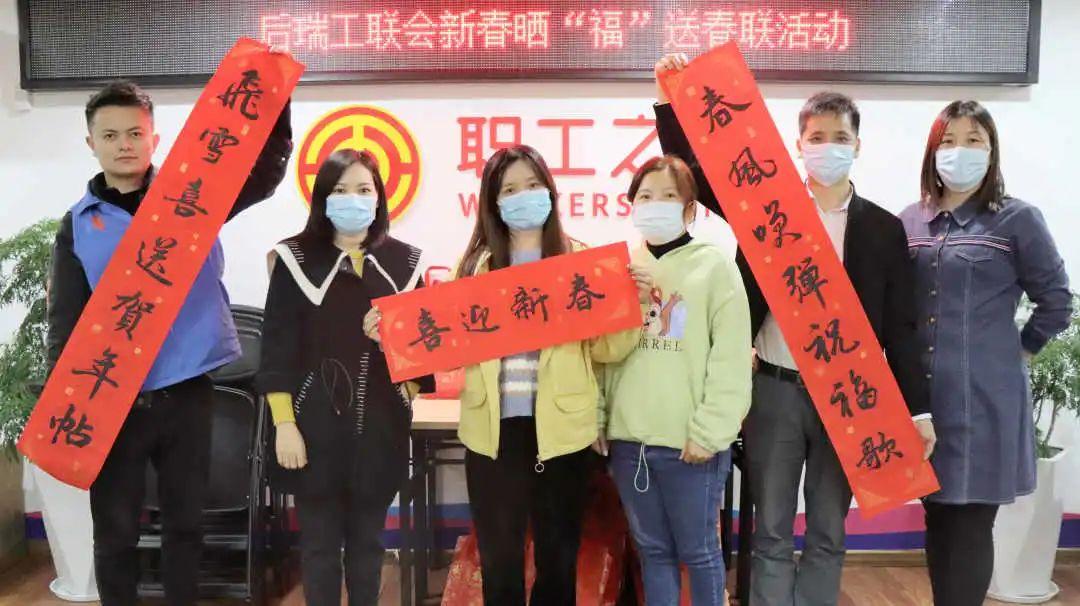 活动末尾,后瑞社区工联会还为积极参与新春晒“福”活动的职工送上春联及祝福,让职工切身感受到“年味”,并发出倡议,希望职工严格落实疫情防控期间的个人防护措施,度过一个平安、祥和的新春佳节。