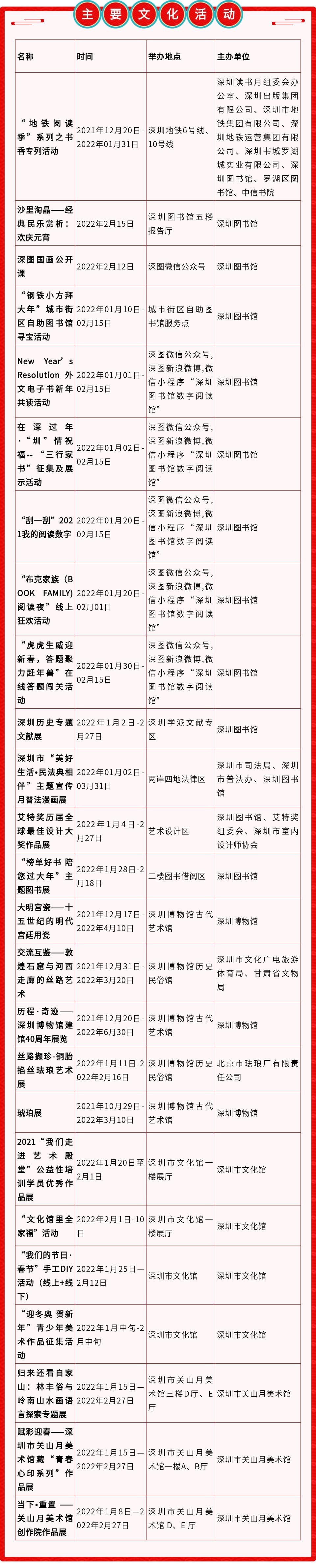 宝安区主要文化活动