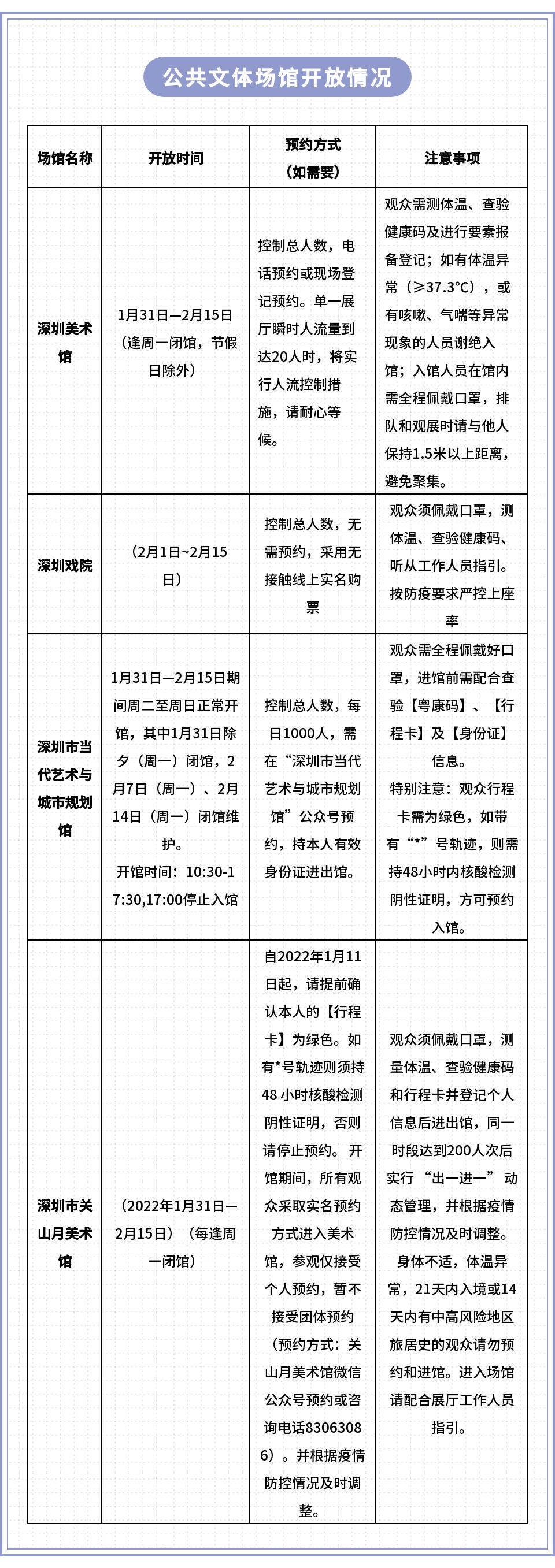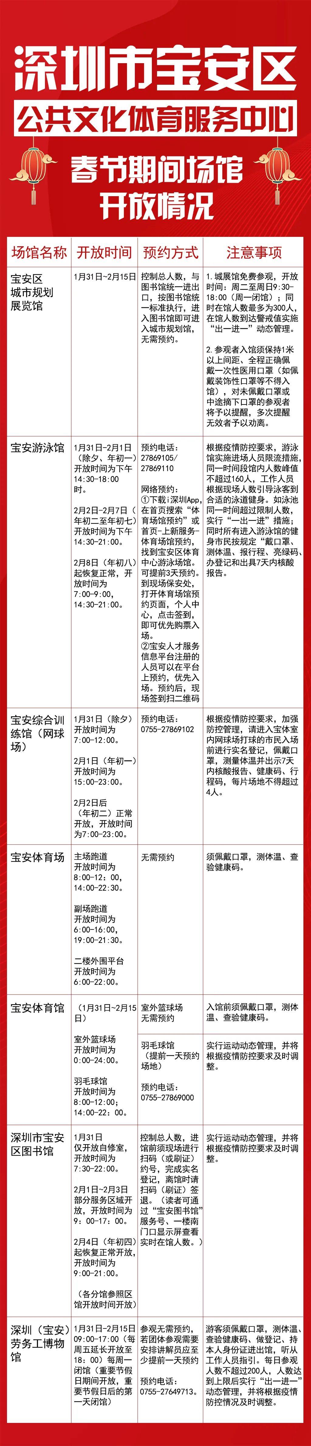 春节期间场馆开放情况