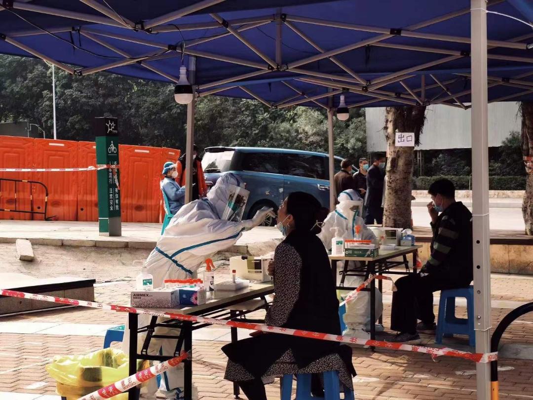 我接到的任务是采样点点长工作,负责统筹安排医护人员的现场采样。第一天来到我的首战场:东乐花园广场,紧张的核酸采样工作从中午持续到凌晨1点,冬日的深圳昼夜温差较大,夜间我们的手脚被寒风吹的冰凉,但是没人抱怨,好像这份工作能给人一种力量,夜晚低温并不会影响我们的动作,采样依然在有条不絮的进行,心想着多做一个就多出一份安全,精神的支撑让我们忘却了躯体的寒冷。采样点长的工作最辛苦,最早来最晚走,没有轮换、不停协调各个环节工作,为了以最快的速度、饱满的精神状态投入到次日的抗疫工作,在这期间我直接住到医院办公室。