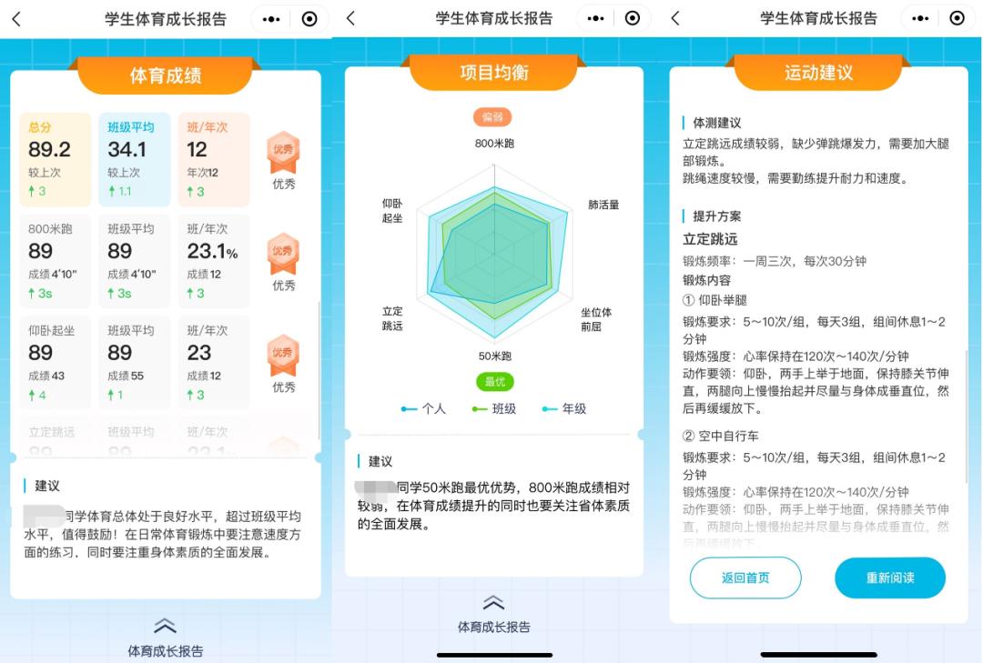 ▲样例:学生体测数据及运动建议