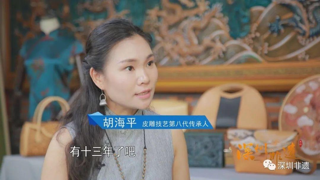 非遗传承人胡海平是有次回内蒙古探亲时,被当地的皮雕艺术深深吸引,此后便一发不可收拾。回深后,她凭借绘画的扎实功底,自学皮雕艺术。期间遇到了蒙古族皮雕工艺美术大师李思沁(嘎瓦),老师被胡海平刻苦钻研皮雕技艺、恢复广东传统皮雕技艺的恒心所感动,收为徒弟。