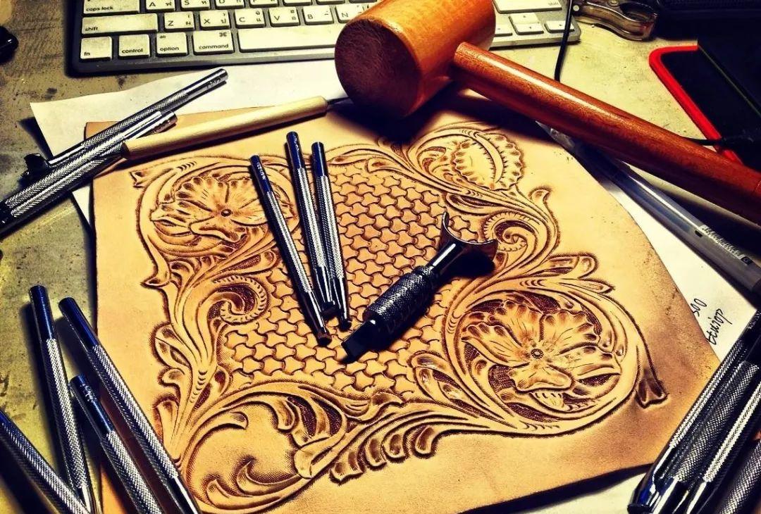 随着社会的发展人们对皮革进行更为复杂的加工,还融合美术,镶嵌等工艺,使其在艺术品中脱颖而出。皮雕工艺繁复、涉及到的工具几百种,更要求根据不同的图案和质地选取合适的染色工序。