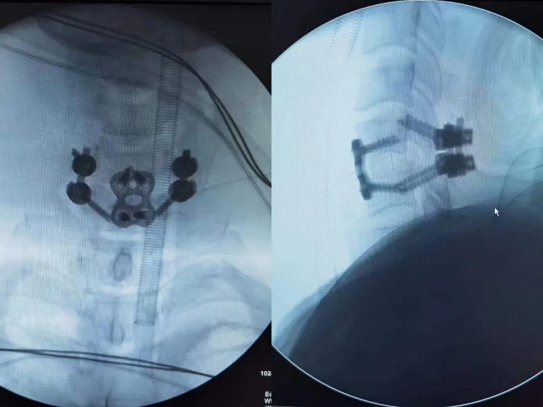 此类骨折的风险性极大,有很高的截瘫风险。经过严谨周密的病例讨论,脊柱骨科团队决定当即为刘先生予以颅骨牵引,通过头端牵引和手法提拉,但依然无法复位。