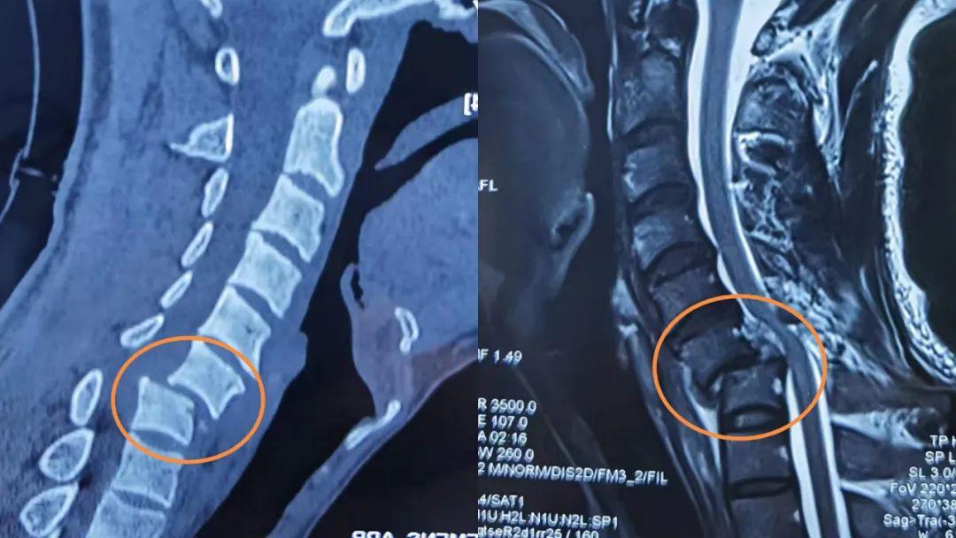 回家后,刘先生的症状没有任何缓解。由于行动不便、疼痛难忍,生活受到极大影响。为及时确诊病因,在朋友的力推下刘先生慕名来到罗医集团罗湖中医院脊柱骨科团队向陈晓东主任求助。经过陈晓东主任详细诊断,患者被确诊为颈椎骨折伴脱位,相应节段的脊髓受到压迫。