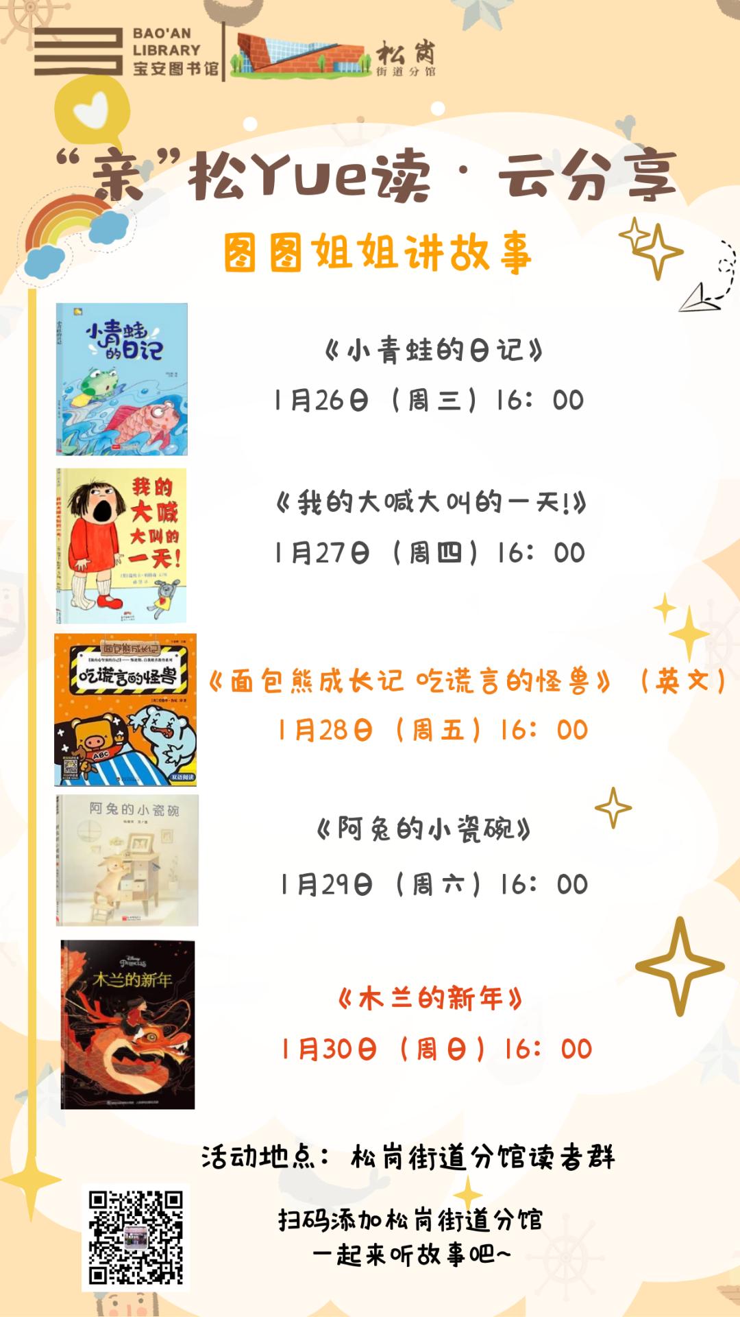 1月26日-31日 分馆活动:松岗 | 福海 | 福永 | 石岩 | 西乡 | 燕罗