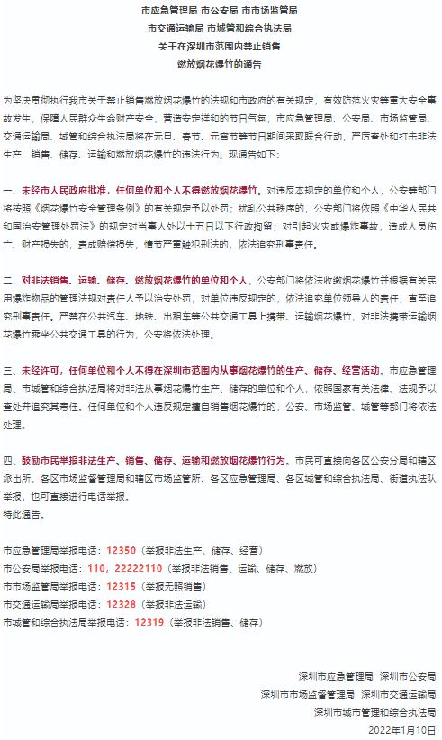深圳市五部门联合发布通告
