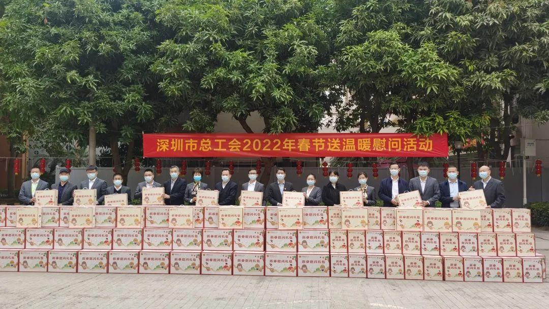 近日,深圳市总工会启动2022年“送温暖”活动,筹集专项经费3236.5万元,采用线下走访慰问与线上普惠服务相结合的方式,为长期坚守在疫情防控高风险工作岗位的一线职工等群体送上慰问品,向他们致以新春祝福。