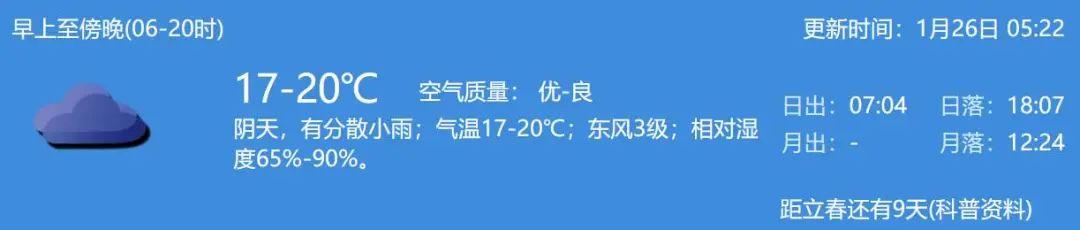 29-30日一股较强冷空气抵深,气温明显下降,沿海、高地和海区最大阵风7级左右,29日阴天有小雨;