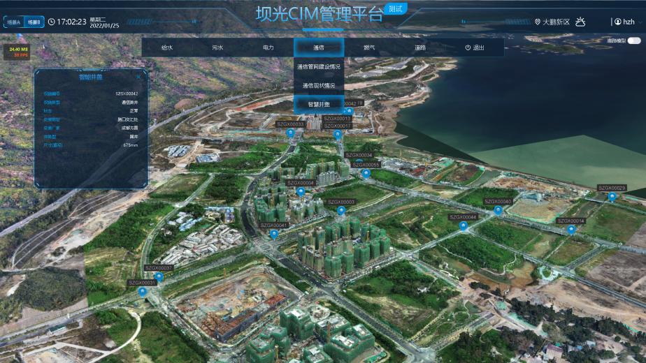 为避免不按规定偷穿、私自穿管等情况,工程师们对坝光竣工路网通讯井盖全部试点智能井盖进行全天24小时监控,通过BIM+IoT(物联网)技术,对坝光片区建成道路通讯管线进行智慧化保障。