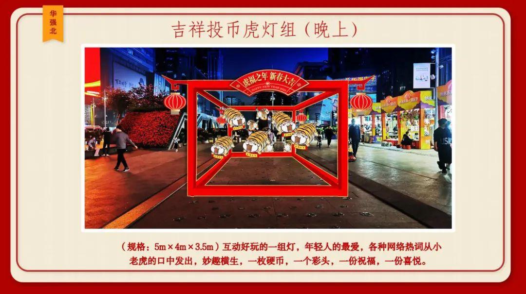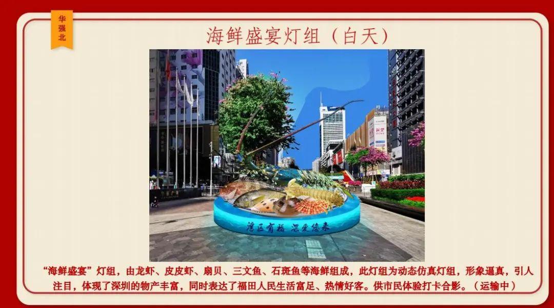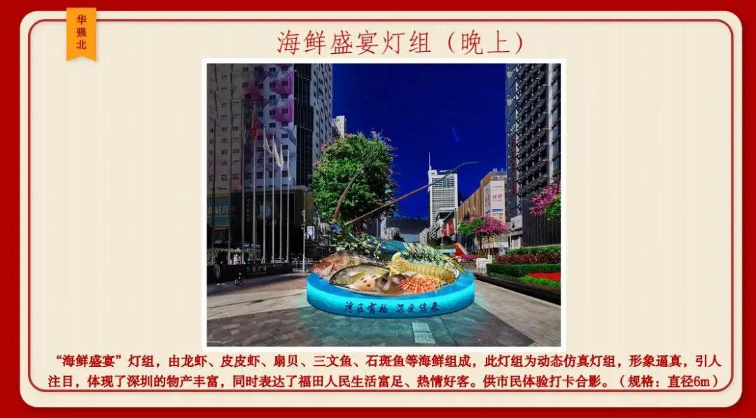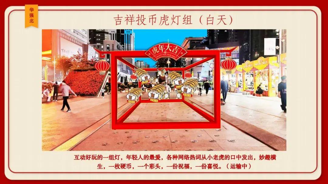 ● 在华强北步行街除了可以路遇“春晚标识同款小老虎”,还能观赏到2022年福田迎春花灯展中的海鲜动态仿真灯组“海鲜盛宴”,更有互动好玩的吉祥投币虎灯组、“首善之区 幸福福田”主题灯,流光溢彩中氤氲着春节的仪式感。