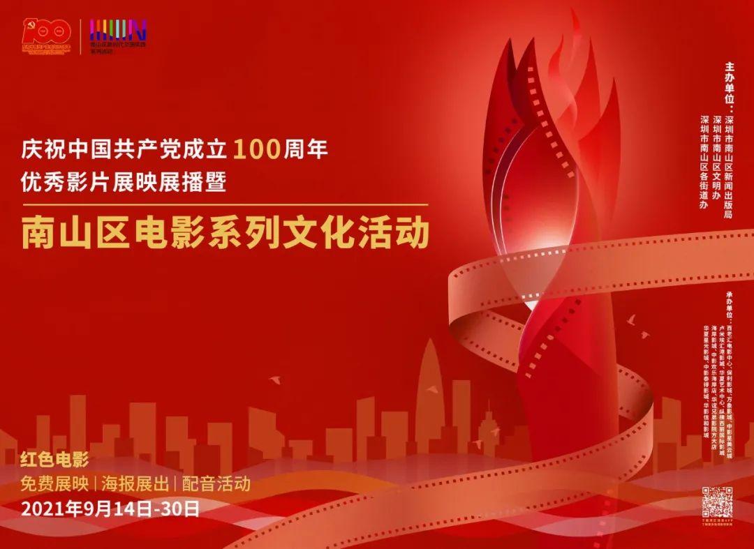 2021年,南山区委宣传部(区新闻出版局)发动全区34家电影院,以庆祝中国共产党成立100周年为主题,积极响应全省“看电影学党史”活动,在9月策划开展“南山区红色电影月”活动,包括100场红色经典影片免费放映、红色电影海报展、红色电影配音活动等。