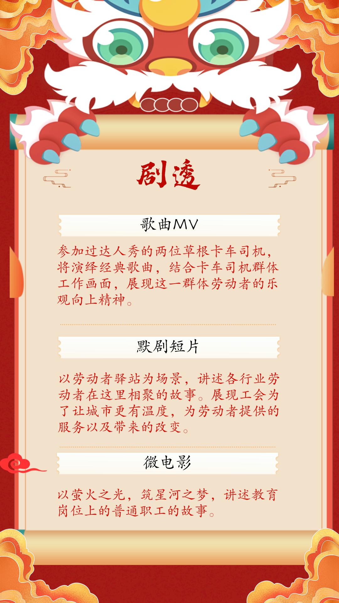 今年,全国职工网络大团圆活动以“迎冬奥 贺新春”为主题,分为“筑梦劳动 冬奥有我”“工匠精神永传承”“新就业 新劳动 新未来”“一起向未来”等4个篇章,通过视觉艺术呈现一线劳动者在国家建设中的默默奉献,展现中国工会在2021年的使命和担当。十大全国产业工会主席、澳门和三沙等地职工书屋以及世界各地的海外员工,将在直播中向全国职工送上新春祝福。