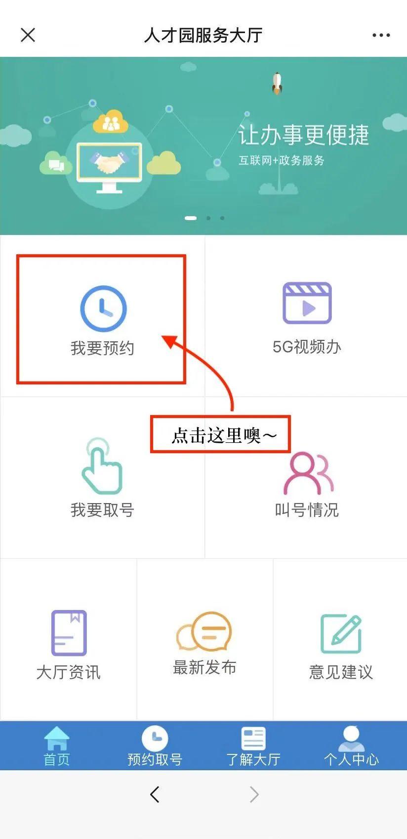 (预约成功后,到达现场微信取号)