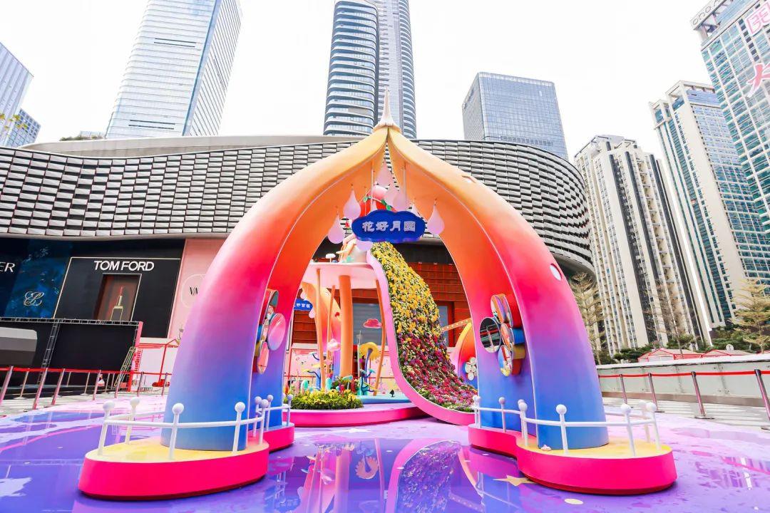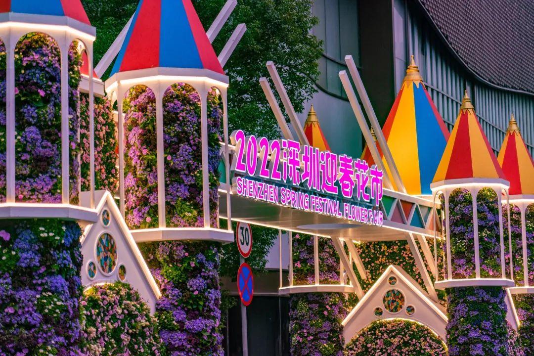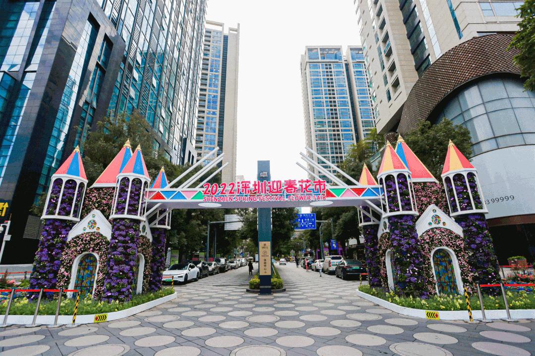 迎春花市主会场设在福田区卓悦中心 · 中央大街,共设置了“花舞鹏城”“梦的城堡”两座大型牌楼。