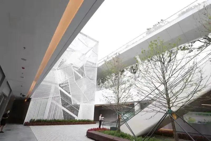全长2公里的宝安滨海廊桥,采用弧形的标志性桥身设计,半透明的金属板网构筑桥身,分为地上、地面、地下三层,公共绿地面积共计4.19万平方米,犹如一条穿行于绿海中的白色巨龙。