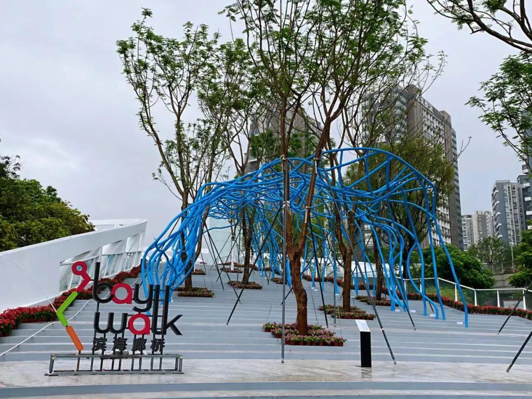 宝安滨海廊桥集生态、观景、服务、艺术、交通于一体,站在滨海廊桥上俯视周围,桥下车水马龙,沿途绿意盎然;走过廊桥,林荫廊道、空中花园、阳光草坡,特色别致景观映入眼帘;从桥下仰望,便能看到周边种植了许多开花乔木;站在远处望去,竟有置身疏林花海的感觉。