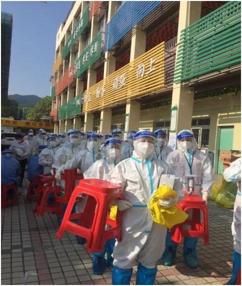 每人一身“白战袍”,携带手消液、手套、黄色垃圾袋等医疗物资进村。大家片刻不停地采样,顾不上喝水、顾不上吃饭、更顾不上上厕所,这一去就工作到深夜才出来。