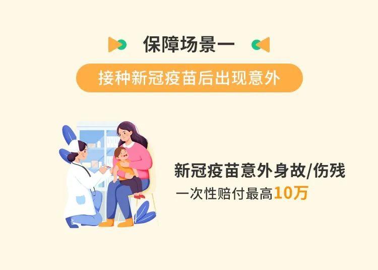 *新冠疫苗接种意外身故/残疾:在保险期间内,被保险人在经人民政府卫生主管部门指定的医疗卫生机构接种新冠疫苗后发生预防接种不良反应或偶合症,并因该不良反应或偶合症直接导致其身故,保险公司按本保险合同约定的身故保险金金额给付身故保险金,同时对被保险人的责任终止;或因该不良反应或偶合症直接导致其伤残并达到本合同附件《人身保险伤残评定标准》(保监发[2014]6号,标准编号为JR/T 0083-2013)所列伤残程度之一的,保险公司按评定标准所对应伤残等级的给付比例乘以身故保险金金额给付残疾保险金,累计给付的保险金达到保险金额时,保险公司对被保险人的保险责任终止。