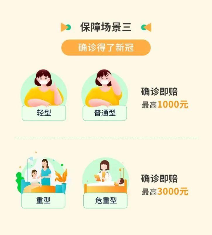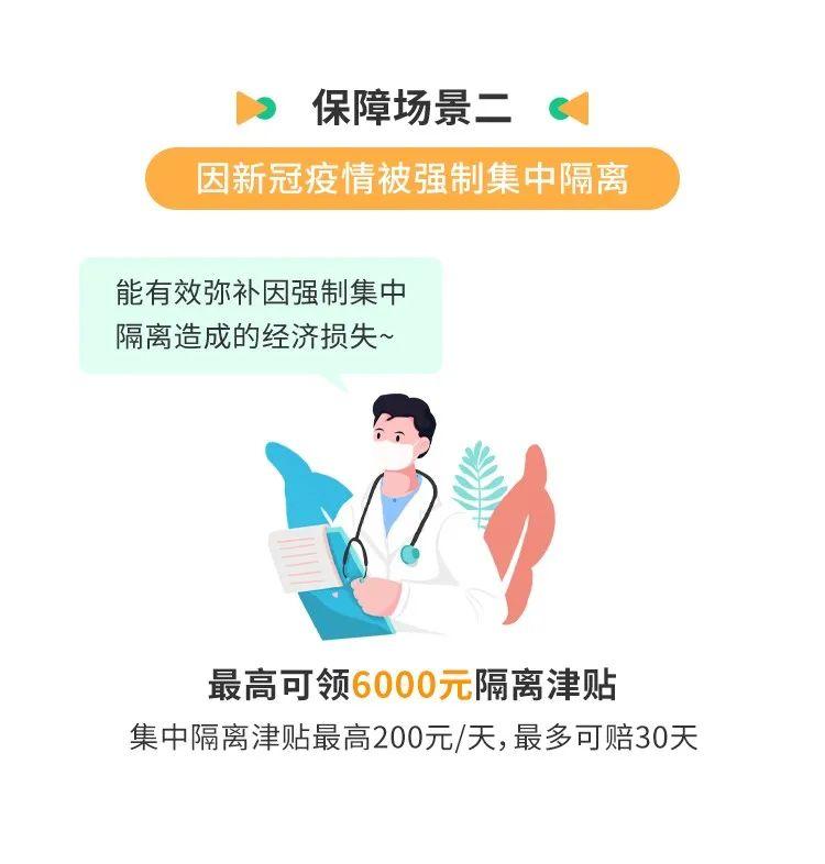 最高6000元集中隔离津贴+最高3000元新冠确诊保险金+最高10万新冠身故/伤残金