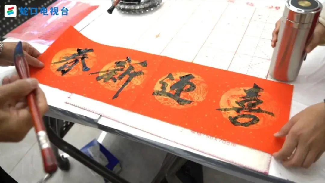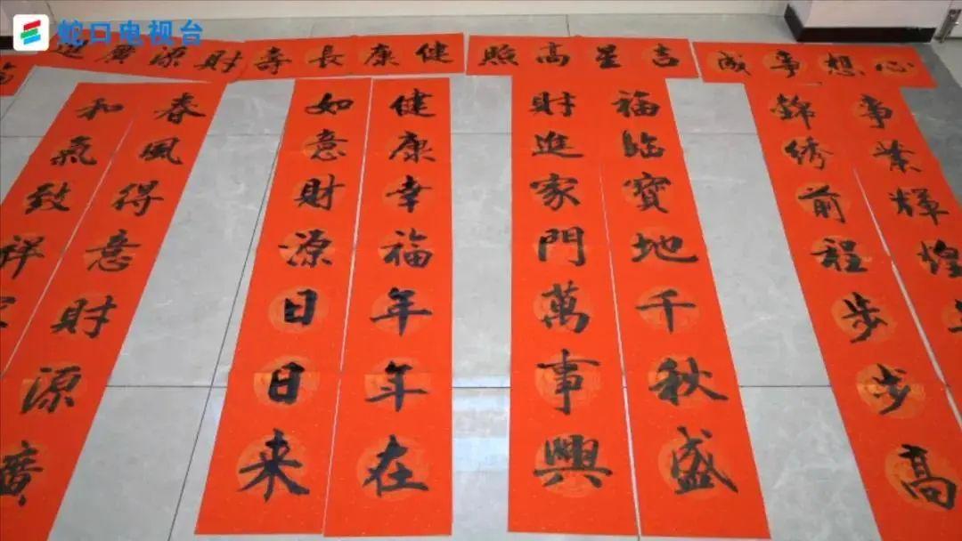 活动现场浓墨飘香,洋溢着新春祥和的氛围。老师们个个书法精湛,他们字体各异,风格不同,但却都充满激情。社区义工们有的传纸递墨,有的帮忙抻纸,有的细心晾墨,红彤彤的春联上一句句充满希望与祝福的对联,寄托着大家对新春的期盼。