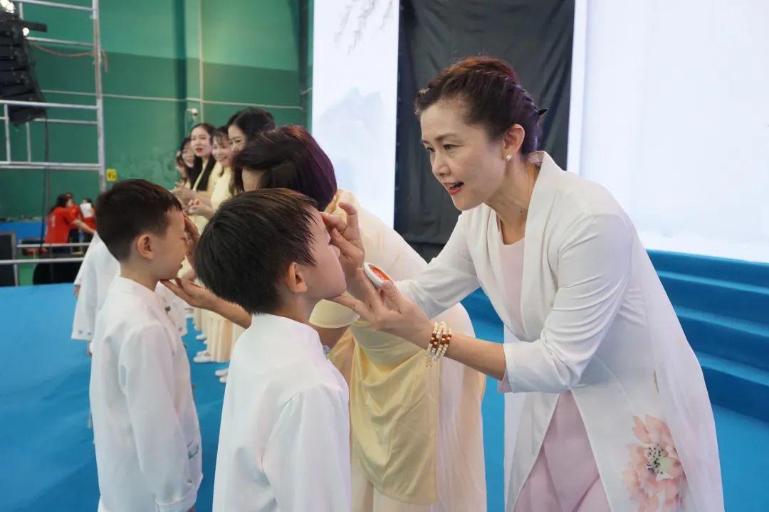 从2016年开始,每年9月28日孔子诞辰日这一天,怡景小学都会开展一年级“开笔礼”,家长与孩子一同参加。孩子们通过自正衣冠、礼敬先师、朱砂启智、诵读经典、击鼓明志等环节,身临其境地感受了中国古代学生入学的第一课,让孩子们在古韵飘香中学习尊师重教、知书达理。