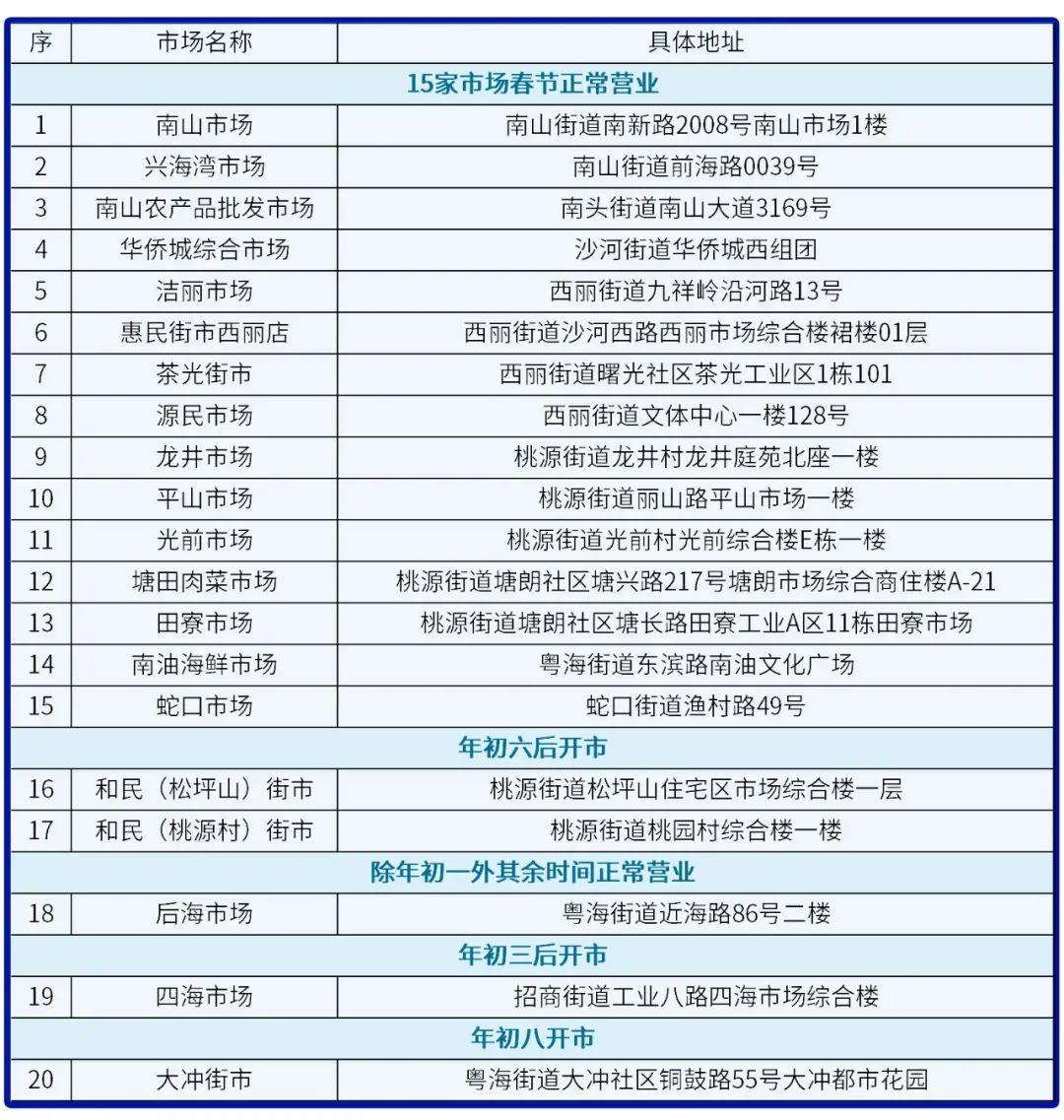 南山15家市场春节期间正常营业