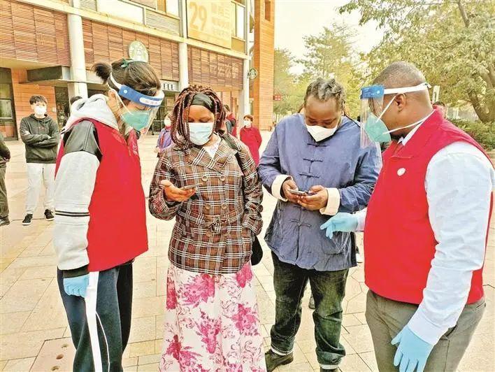 在海裕社区核酸检测采样点,国际志愿者Francis格外引人注目。他耐心为市民讲解接收国际邮件的相关防疫知识,并提供具体指引。