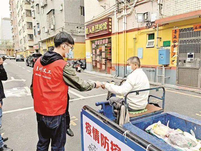 “外卖小哥”李添喜发动自己身边的同行加入福永街道防疫志愿者队伍,凭借对社区的熟悉程度,当起义务“跑腿员”,给辖区居家隔离人员派送物资。