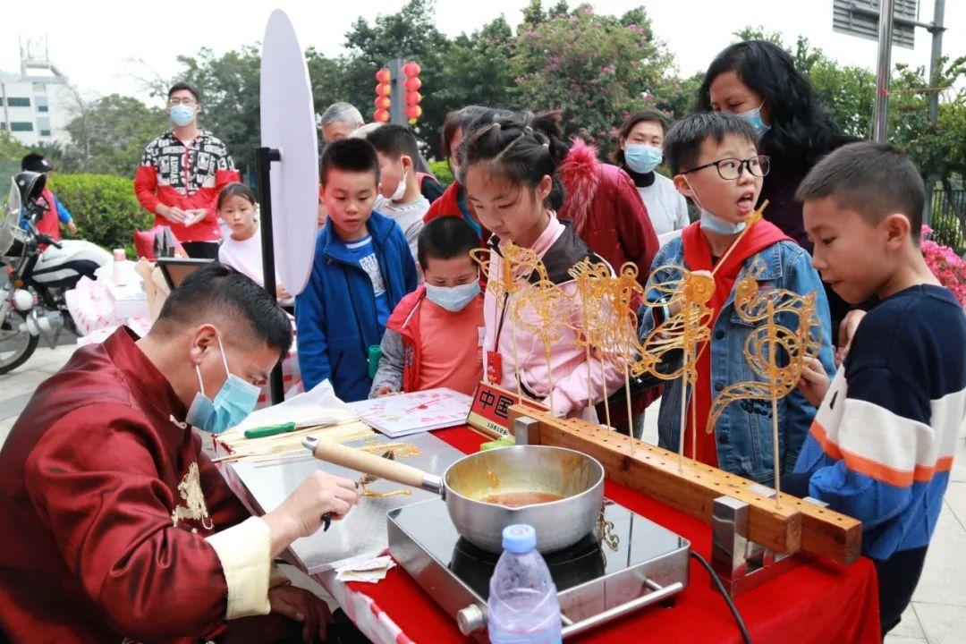 活动现场,党群服务中心还同时开设剪纸、糖画、京剧脸谱绘制等“国粹”体验活动。居民们在等候春联的同时还可以动手体验剪纸、糖画、京剧脸谱的绘制,一边感受趣意横生的糖画魅力,一边讨论着各地的风俗习惯,现场甚是热闹。