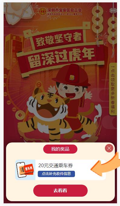 5.中奖了记得要填写准确的个人信息哟!关注“宝安工会”微信公众号,发送关键字“兑奖”可以获取奖品的发放情况!